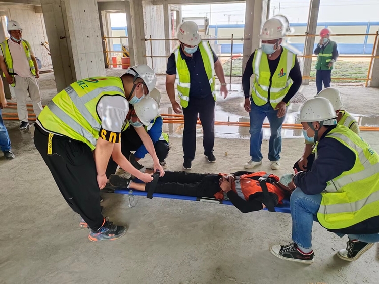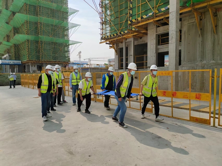 演練開始前,項(xiàng)目經(jīng)理就本次演練作了詳細(xì)講解,明確各管理人員的救援職責(zé)、講解應(yīng)對突發(fā)事件的科學(xué)高效救援措施。隨后,項(xiàng)目安全負(fù)責(zé)人向參加演練人員宣貫高處墜落應(yīng)急預(yù)案,并宣布演練正式開始。