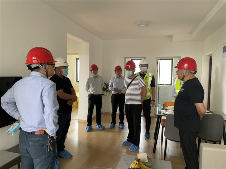 殷傳才一行來到肥東振興EPC項目施工現(xiàn)場,詳細(xì)聽取了項目負(fù)責(zé)人沈飛關(guān)于項目進度情況、施工重難點、安全生產(chǎn)、疫情防控等方面的匯報。在參觀精裝修樣板間時,殷傳才一行對項目的施工進度和樣板間的選型給予了高度評價和充分肯定,并要求項目按照此標(biāo)準(zhǔn)保質(zhì)保量按時完成既定任務(wù),將項目打造成租賃住房的典范。過程中,殷傳才要求項目部要嚴(yán)格堅持安全施工、規(guī)范施工、高效施工,強化責(zé)任意識,加強現(xiàn)場管理,進一步提升項目管理規(guī)范化精細(xì)化水平,打造精品工程。