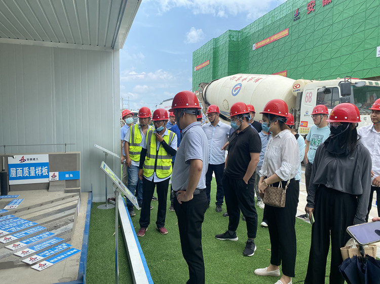 上午10點觀摩團一行首先來到了五公司承建的產(chǎn)城融合示范區(qū)文化中心項目的檔案館施工現(xiàn)場,文化中心項目經(jīng)理張禮君帶領(lǐng)觀摩團先后參觀了安全、質(zhì)量、機電安裝等樣板展示區(qū),現(xiàn)場兩位講解員更是從安全管理、質(zhì)量管理、進度管理、技術(shù)創(chuàng)新、揚塵防治、黨建活動開展、疫情防控等幾個方面作了具體介紹,并且重點介紹了高強鋼筋直螺紋連接技術(shù)、預(yù)應(yīng)力技術(shù)、銷鍵型腳手架及支撐架、基于BIM的管線綜合技術(shù)、綠色施工在線監(jiān)測評價技術(shù)、施工揚塵控制技術(shù)等新技術(shù)在項目中的應(yīng)用,得到了觀摩團的一致認(rèn)可。