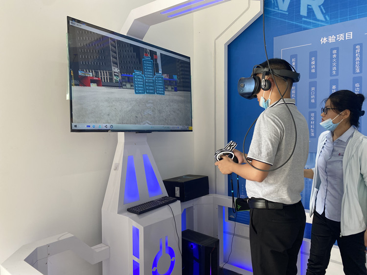 觀摩團隨后來到了產(chǎn)城融合示范區(qū)智慧展廳,五公司副經(jīng)理范太忠就現(xiàn)場沙盤給觀摩團詳細介紹了產(chǎn)城融合示范區(qū)一期、二期所有項目的具體情況。智慧展廳的各種體驗項目也引起了觀摩團的高度關(guān)注,尤其是vr體驗區(qū),他們在現(xiàn)場管理人員的幫助下利用vr技術(shù)模擬體驗了坍方、高墜等事故的過程,對施工現(xiàn)場存在的安全事故隱患有了更深一步的了解。