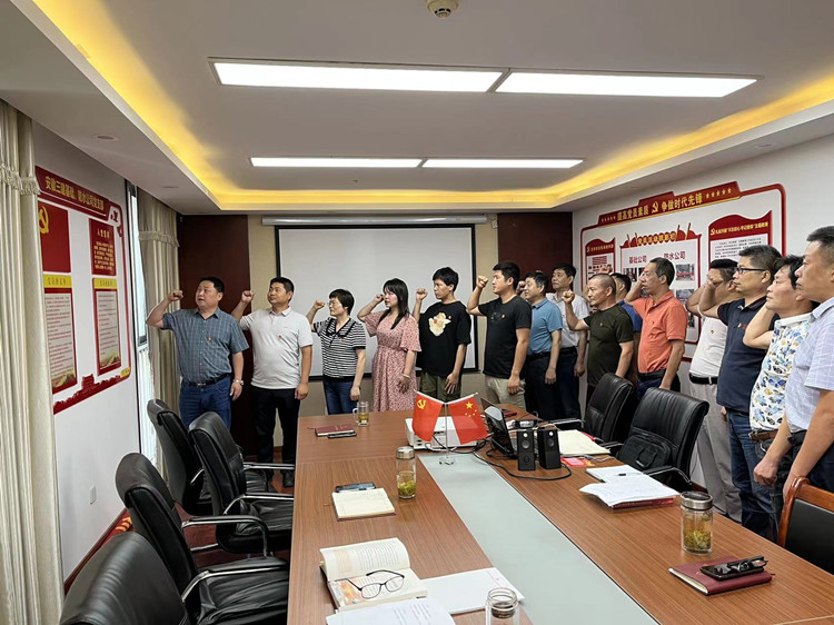 會(huì)議首先進(jìn)行了莊嚴(yán)神圣的新黨員入黨宣誓;隨后全體黨員面向黨旗、高舉右手、重溫入黨誓詞,進(jìn)一步堅(jiān)定永遠(yuǎn)跟黨走的決心。
