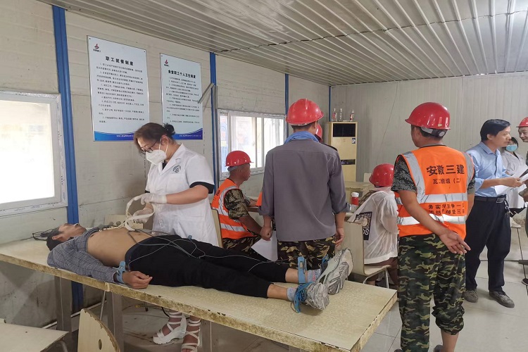 為提高廣大職工在高溫天氣下作業(yè)的自我預警和保護意識,切實關(guān)愛員工生命健康,7月9日,上海公司邀請蕪湖路街道社區(qū)衛(wèi)生服務中心(原安徽三建職工醫(yī)院)六名醫(yī)生進入項目部為員工進行健康體檢。