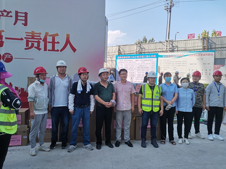 業(yè)主單位一行首先向奮戰(zhàn)在一線的工人及項目部管理人員表示了親切的慰問和感謝,提醒大家多喝水并盡可能做好防護措施,隨后,藿香正氣滴丸、風(fēng)油精、水杯、毛巾,一箱箱滿載沉甸甸的關(guān)愛的清涼物資送到了工友的手上,雖然衣衫已被汗水浸透,但他們的臉上十分興奮:“拿著這些東西都感覺不到累啦!”