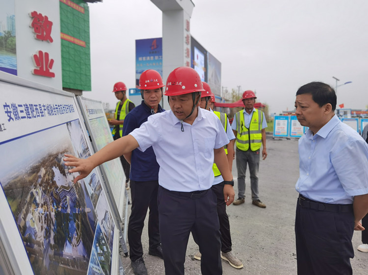 成忠一行聽取了肥西縣產(chǎn)城融合示范區(qū)開發(fā)項(xiàng)目的建設(shè)情況及進(jìn)度,肯定了安徽三建在肥西縣總工會組織開展的“建功十四五,奮進(jìn)新征程”勞動競賽中,展現(xiàn)出的技術(shù)精湛、施工嚴(yán)謹(jǐn)、質(zhì)量優(yōu)先、協(xié)同高效等作為省屬國有龍頭施工企業(yè)應(yīng)有的綜合實(shí)力。
