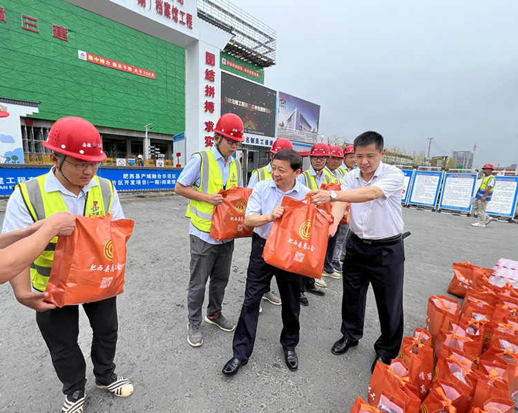 肥西縣人大常委會主任成忠一行赴安徽三建肥西產(chǎn)融檔案館項(xiàng)目開展“送清涼”活動
