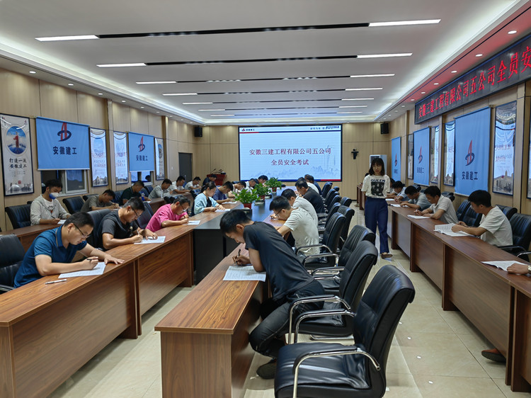 五公司根據各項目施工特點,靈活安排時間,制定了5套不同內容的試卷,于7月23日至25日在肥東君逸花園項目、皖投國濱世家二期、三期項目、產城融合示范區(qū)指揮所會議室等5個項目,開展了5場閉卷考試,五公司包括領導班子成員、小機關人員等185人參加了考試,參與率達到100%。安全生產只有起點,沒有終點,面對當前安全生產的嚴峻形勢,五公司始終緊繃“安全生產”這根弦,強化紅線意識和底線思維,夯實安全管理基礎,將安全生產刻在心中,落實在行動上。