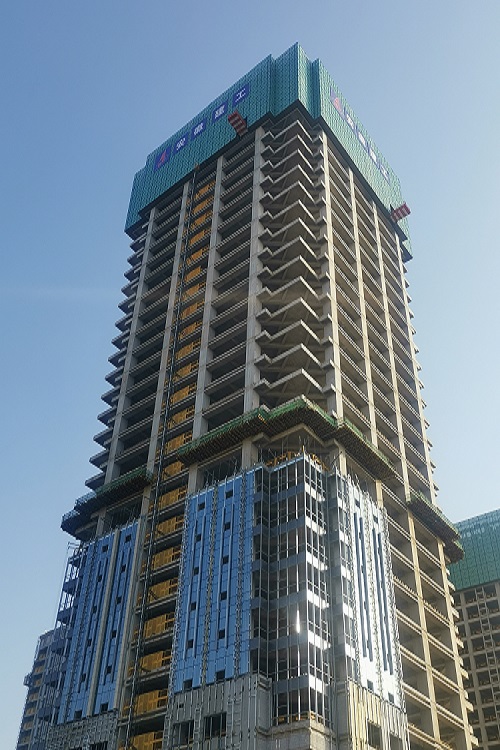 圖為淄博明發(fā)世貿(mào)中心超高層項(xiàng)目建設(shè)