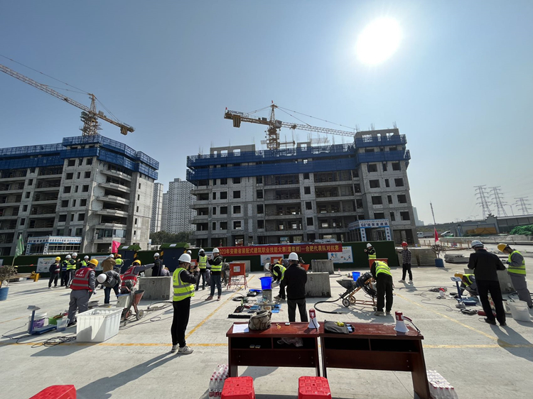 安徽省裝配式職業(yè)技能大賽(灌漿組)合肥代表隊(duì)賽前對(duì)抗賽在合肥濱湖科學(xué)城BK202108地塊項(xiàng)目舉辦