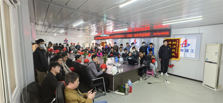 在項目會議室,呂遠(yuǎn)對同學(xué)們的到來表示歡迎,他表示,作為校友很榮幸代表公司負(fù)責(zé)本次觀摩活動。本次精心挑選了在建省重點(diǎn)工程——安徽省公共衛(wèi)生臨床中心(蕪湖)項目為2023級準(zhǔn)畢業(yè)生在不久后快速轉(zhuǎn)換角色奠定基礎(chǔ)。隨后,播放了安徽三建宣傳片,項目技術(shù)負(fù)責(zé)人對該項目工程概況、管理重難點(diǎn)、創(chuàng)新做法、施工亮點(diǎn)、黨群文化建設(shè)等方面進(jìn)行了介紹。學(xué)生們認(rèn)真聆聽,熱情交流。對企業(yè)概況和項目管理有了整體的認(rèn)識。