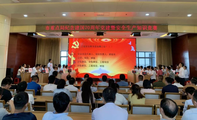 為慶祝中國共產(chǎn)黨建黨98周年,迎接建國70周年,深入學(xué)習(xí)貫徹習(xí)近平新時代中國特色社會主義思想和黨的十九大精神,提高全員安全生產(chǎn)意識,6月26日下午,市重點局在中鐵十局三公司舉辦了紀念建國七十周年黨建暨安全生產(chǎn)知識競賽,安徽三建八公司市中心圖書館項目代表隊喜獲比賽二等獎。
