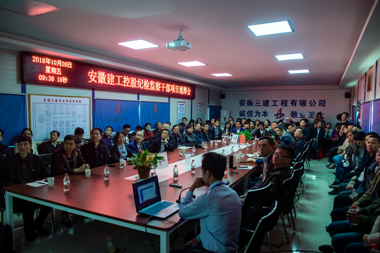 2018年10月26日上午,集團(tuán)公司紀(jì)委書記宋志華率集團(tuán)各子、分公司紀(jì)檢監(jiān)察干部培訓(xùn)班成員100余人到安徽三建八公司承建的市青少年綜合實(shí)踐基地項(xiàng)目,觀摩調(diào)研項(xiàng)目黨建和廉潔建設(shè)。