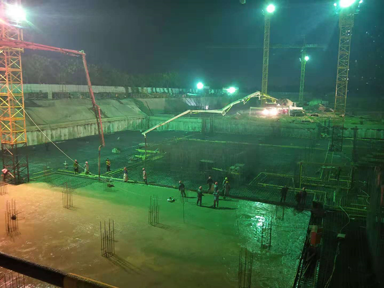 為全面保障項目搶工順利實施,項目部采取優(yōu)選班組、優(yōu)化施工組織、優(yōu)化工作面等多方面措施。為了保障夜間施工順利進行,項目部實施夜間值班制度并多次協(xié)調(diào)環(huán)保部門,在保障不擾民的情況下日夜施工。就這樣,項目部白天安排扎鋼筋,支模版,晚上澆筑砼,24小時交叉作業(yè)。