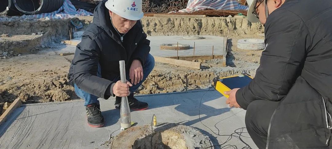 基礎(chǔ)公司郭磊在項(xiàng)目現(xiàn)場(chǎng)配合做樁基檢測(cè)。