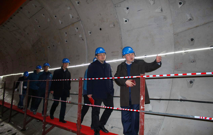 下午觀摩團(tuán)抵達(dá)六公司軌道交通4號線4標(biāo)段項目。何洪春率觀摩團(tuán)沿著軌道步行至盾構(gòu)機(jī)頭掘進(jìn)的位置,現(xiàn)場了解盾構(gòu)機(jī)掘進(jìn)過程中土方的出土方式、管片的安裝方法以及注漿施工工藝;聽取了軌道交通各施工部分情況的介紹。