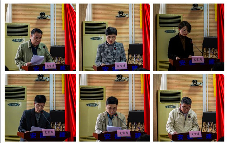 圖為市場經(jīng)營部等六個(gè)部門負(fù)責(zé)人進(jìn)行現(xiàn)場述職