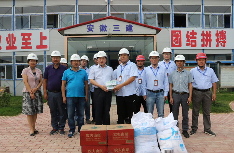 炎炎夏日送真情,絲絲清涼潤心田。7月15日至7月31日,公司黨委書記、董事長左登宏,黨委副書記、總經(jīng)理何洪春,黨委副書記黃麗春等班子成員分別帶隊,冒著高溫酷暑,深入項目工地、工廠車間,給奮戰(zhàn)在施工一線的職工送去了綠豆、白糖、毛巾、十滴水、仁丹、風油精等防暑降溫物品。兩周的時間里,公司領(lǐng)導班子“送清涼”覆蓋全公司范圍內(nèi)16個專業(yè)公司和15個在建項目部,共計慰問人數(shù)達6000余人。