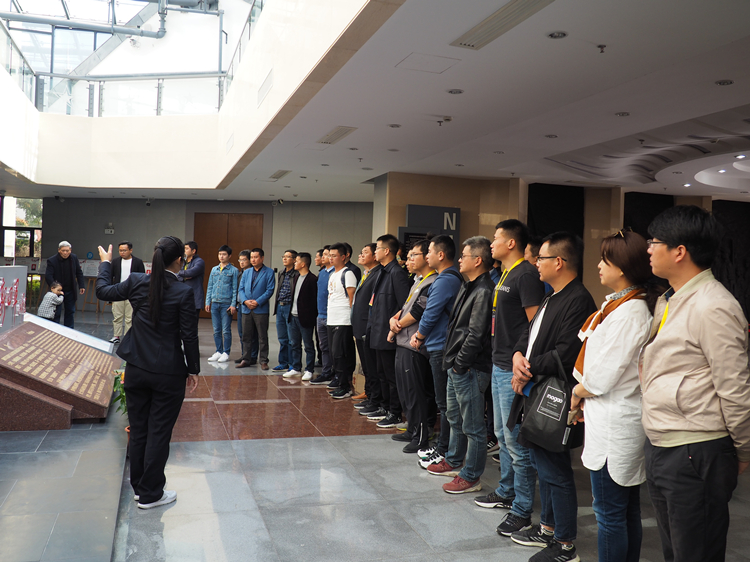 圖為公司企業(yè)標兵在巖寺新四軍軍部舊址紀念館仔細聆聽講解員講解