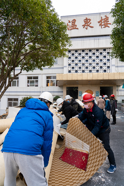 2月3日三建黨員職工主動到現(xiàn)場開展拆除和清運(yùn)工作