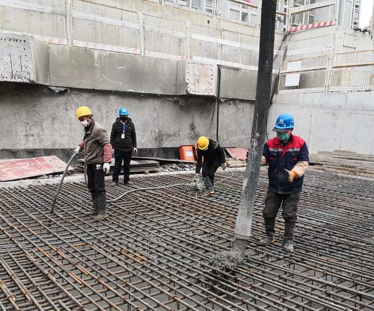 軌道交通項目工人師傅正在澆筑混凝土