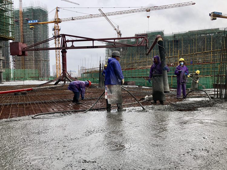 “五一”假期期間,一公司五省八地各項目搶抓黃金施工期,加大機(jī)械、人員投入力度,在保證工程質(zhì)量的前提下,加快施工進(jìn)度。圖為一公司北海吾悅廣場項目五一期間澆筑混凝土。