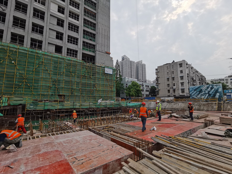 五一期間,七公司主要項目均加班加點趕超工期,項目管理人員采取輪休的方式保證工程進(jìn)度。圖為天長恒大項目組織管理人員15人,工人近300人,開展主題酒店基礎(chǔ)主體施工。自2020年3月份復(fù)工以來,該項目已完成產(chǎn)值約2200萬。