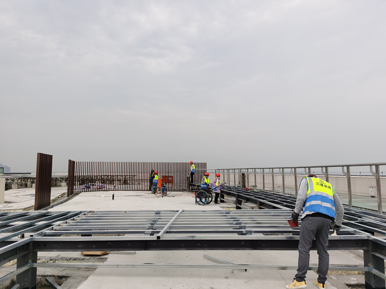 受新冠疫情影響,裝飾公司各項目復(fù)工節(jié)點比計劃稍有滯后,為了追回進(jìn)度,五一小假期間,各在建項目不停工,管理人員依然堅守崗位,加班加點利用晴好天氣搶回工期。圖為裝飾公司安徽創(chuàng)新館2號館觀景平臺施工。