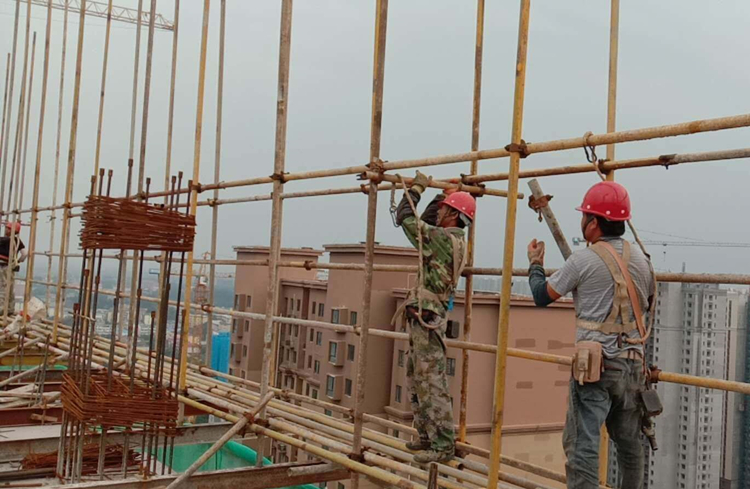 8月份以來,皖北連天35°以上高溫天氣,亳州時代樾府項目正值上結(jié)構(gòu)階段,架業(yè)公司要求外架搭設(shè)班組嚴格遵守上級主管部門和項目部要求,錯峰上班、合理安排工作,既要搶抓工期,也要遵守安全搭設(shè)紀律,確保高溫期間施工安全。圖為工人師傅在搭設(shè)防護架。
